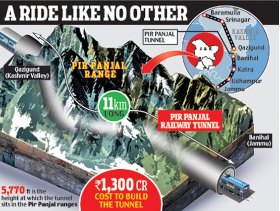➽ Pir Panjal Railway tunnel the longest tunnel in the country